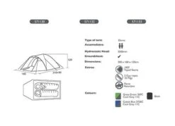 - Includes pump, peg set, storm straps and carry bag